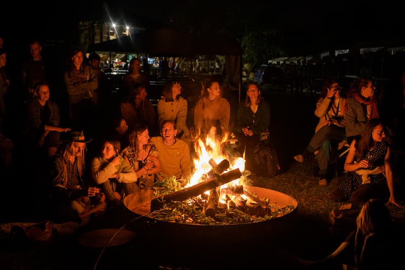 Ko se dan prevesi v večer, se festival umiri ob ognju, glasbi in druženju.