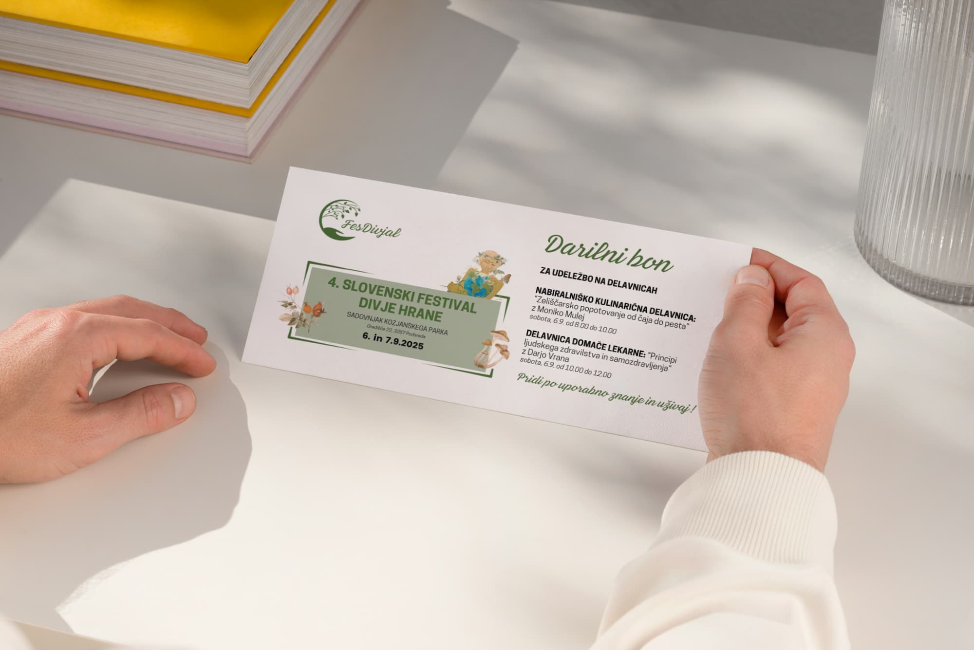Podarite izkušnjo! Darilni bon FesDivjal omogoča prijavo na eno izmed delavnic po izbiri. Po potrjenem nakupu prejmete personaliziran PDF bon na e-mail.